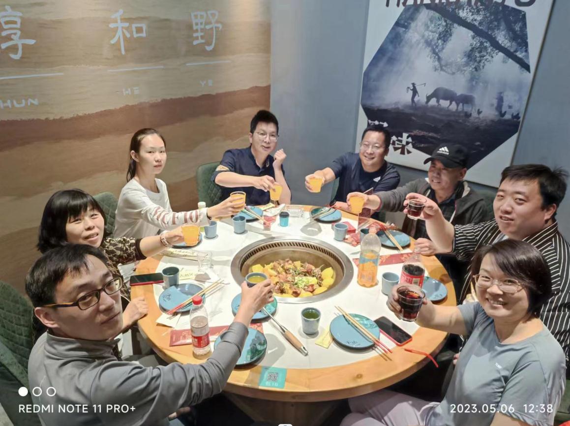 全員登頂下山后,大家歡聚一堂,享受了一頓豐盛的大餐。