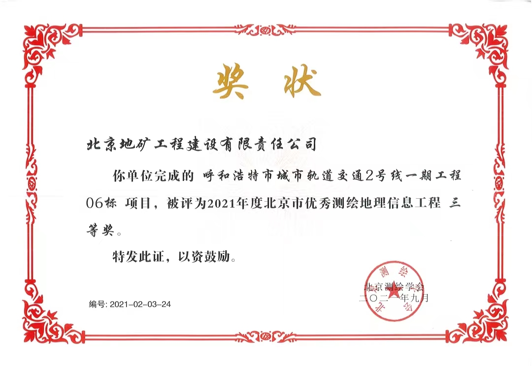 • 2021年呼和浩特軌道交通測(cè)繪獎(jiǎng)狀