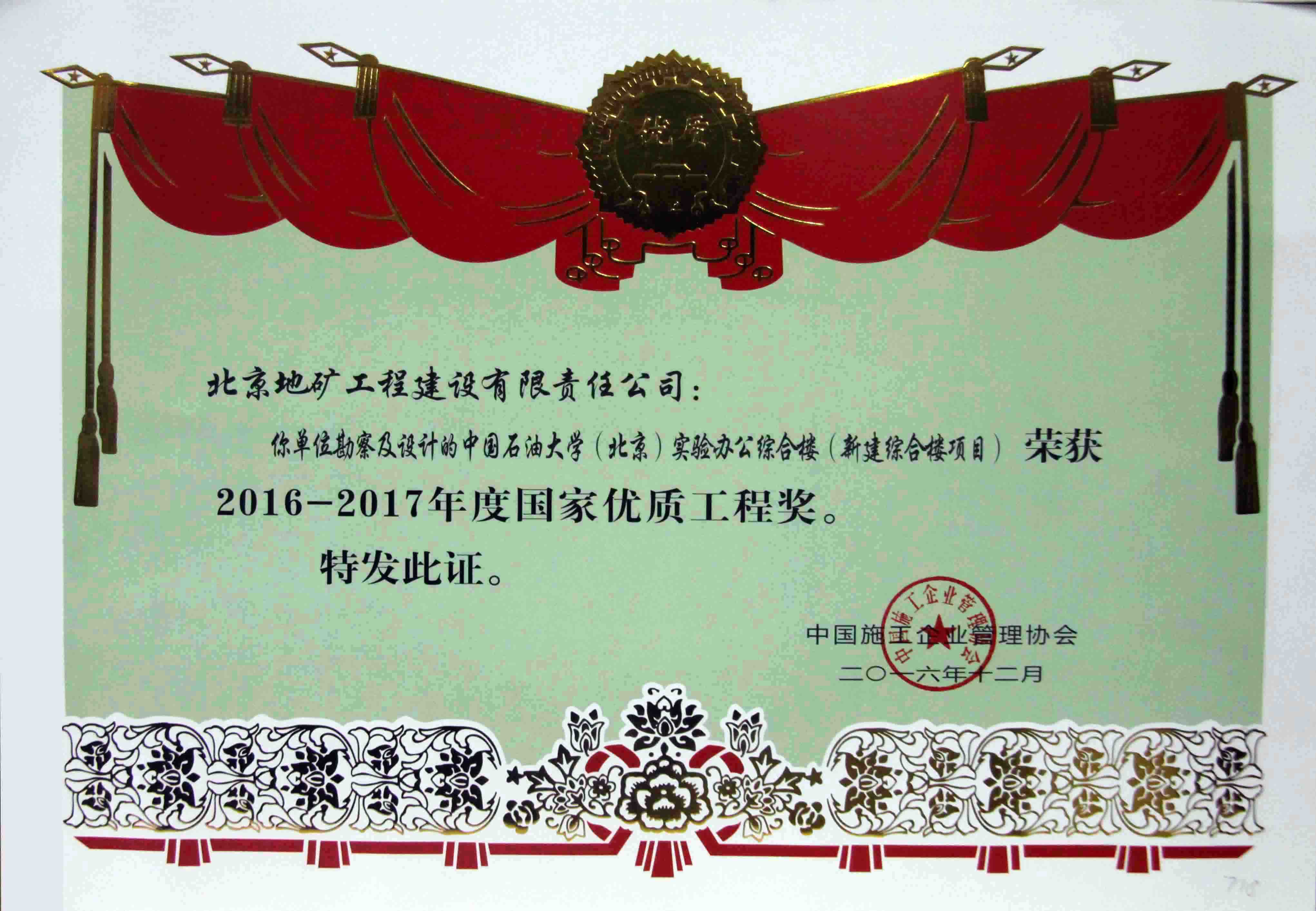 • 2016-2017年國(guó)家優(yōu)質(zhì)工程獎(jiǎng)